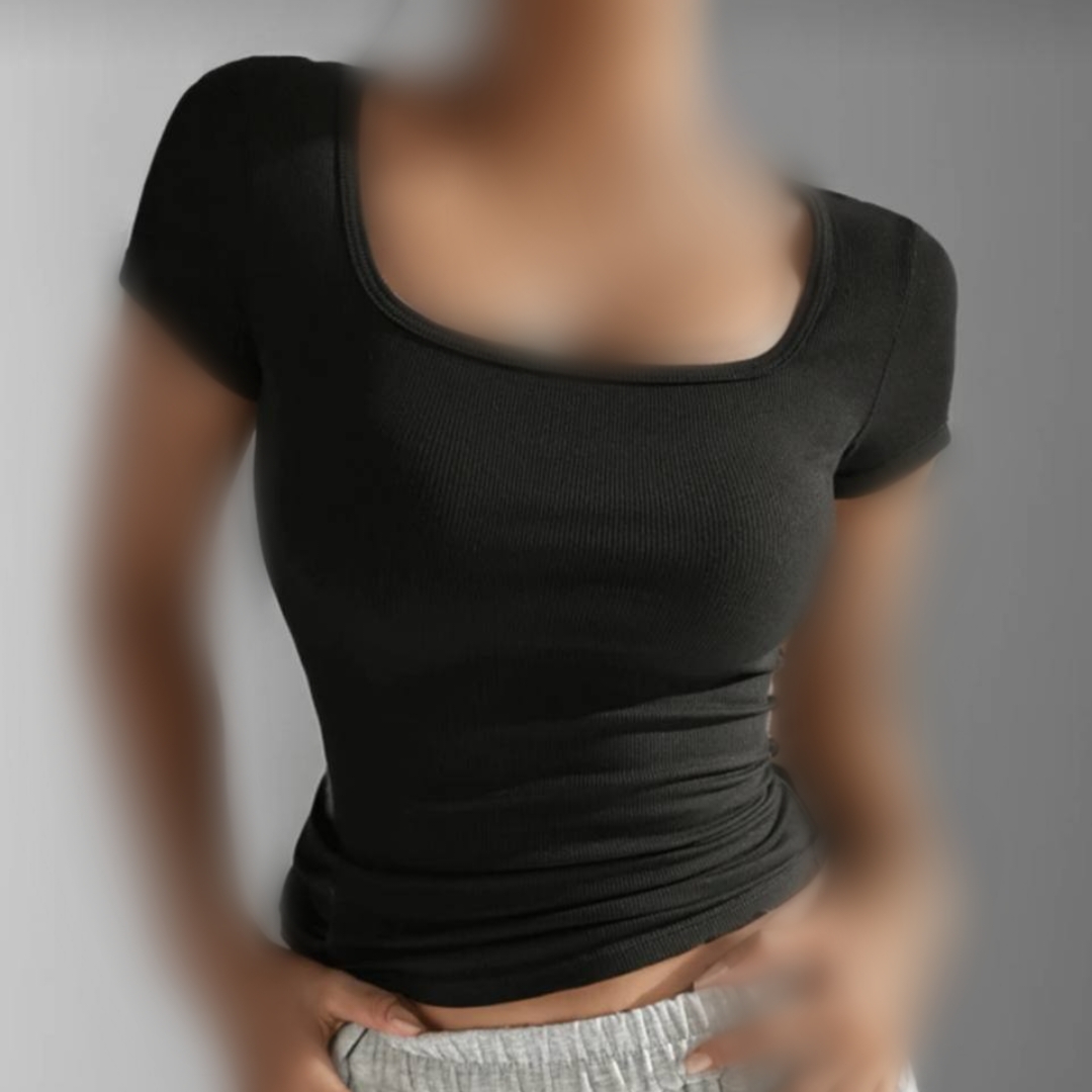 کراپ تیشرت یقیه خشتی بیسیک (پک 6 عددی)